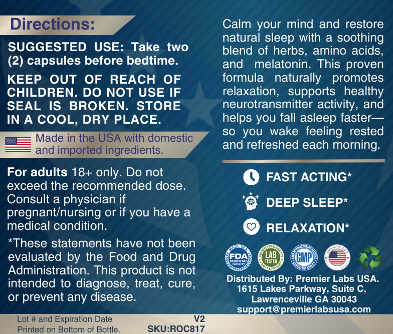 Discover the natural way to recharge your mind and body with Premier Labs USA Sleep Formula — a premium blend of calming botanicals, amino acids, and essential nutrients designed to promote deep, restorative sleep without grogginess.